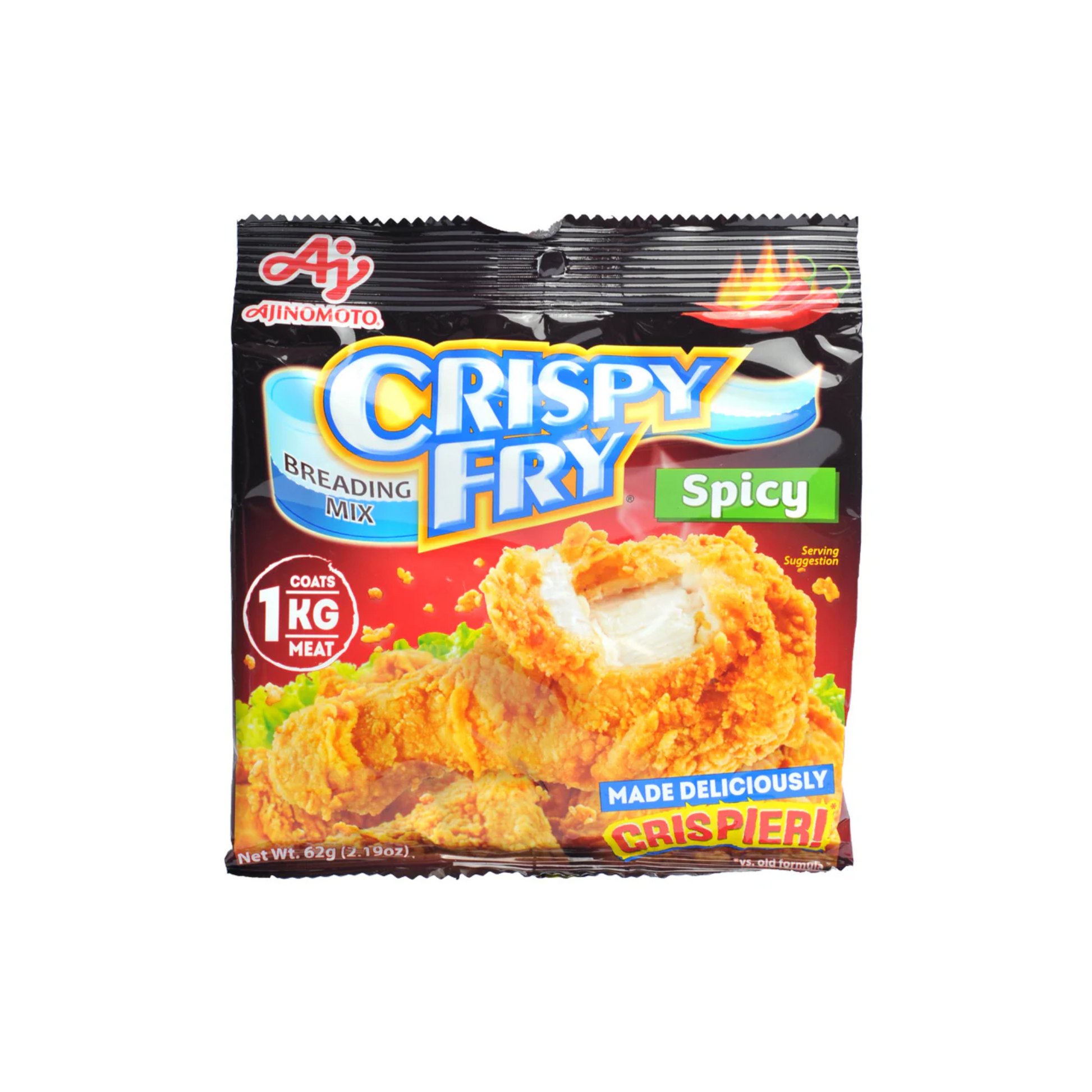Ajinomoto Crispy Fry Spicy a flavorful breading mix that gives your fried chicken an irresistibly crispy texture with a bold, spicy kick. This 62g pack is perfect for adding excitement to everyday meals, whether you're cooking for family or craving something with extra flavor.