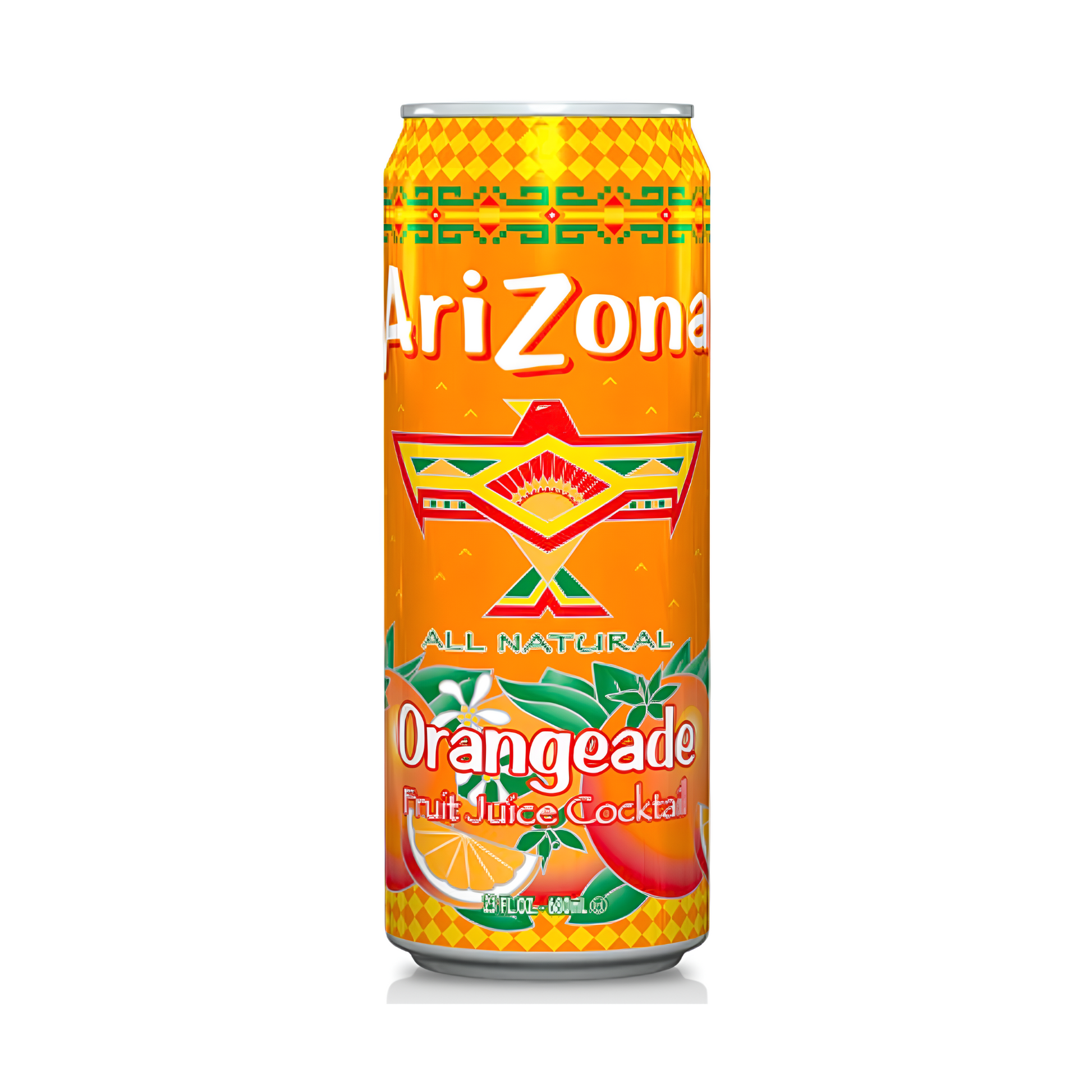 Arizona Orangeade Fruit Juice Cocktail! Packed in a signature tall 650ml can, this drink delivers a sweet and tangy orange flavor that’s smooth and satisfying. Perfect for cooling down on a hot day, pairing with meals, or simply enjoying as a fruity treat anytime. No artificial flavors and made with real fruit juice – just pure orange goodness in every sip!