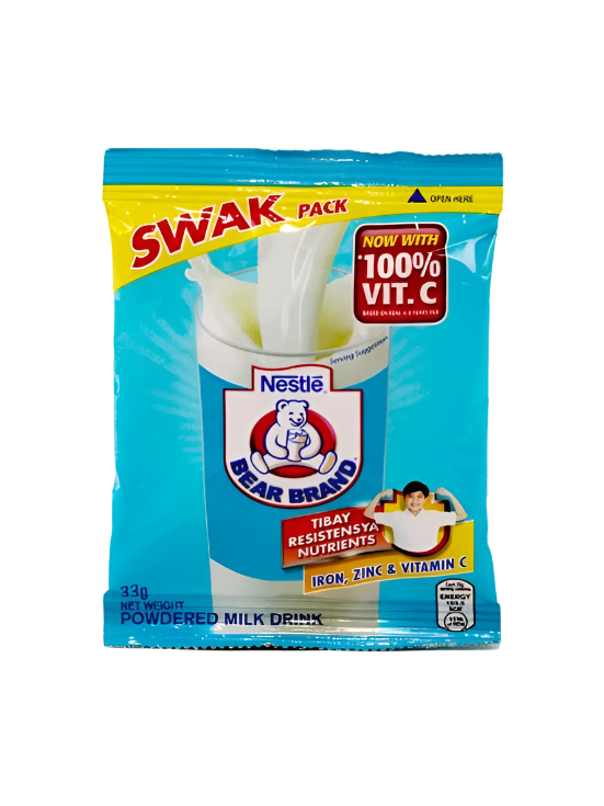 Bear Brand Powdered Milk Swak Pack is a nutrient-enriched powdered milk drink designed to support growth and development. Fortified with Iron, Zinc, and Vitamin C, it offers essential nutrients for a healthier body. Its convenient single-serve sachet makes it an ideal choice for on-the-go consumption.