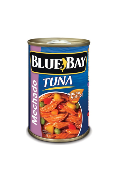 Blue Bay Tuna Mechado. This ready-to-eat dish features tender tuna chunks simmered in a savory, tomato-based mechado sauce, inspired by the classic Filipino recipe. It's a quick and hearty meal that pairs perfectly with steamed rice for lunch, dinner, or baon.