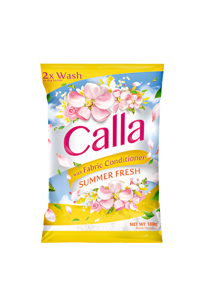 Calla Powder Special Fabric Conditioner in Summer Fresh This 100g pack is specially formulated to leave your clothes irresistibly soft, smooth, and refreshed with a light, uplifting fragrance. It helps reduce wrinkles, static cling, and makes ironing easier perfect for everyday laundry care. Gentle on fabrics but tough on odors, Calla keeps your clothes looking and smelling fresh all day.