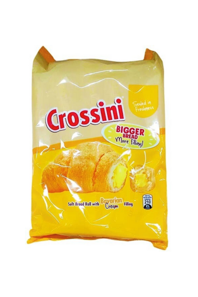 Crossini Rolls Classic Bavarian Cream. These soft, fluffy cake rolls are generously filled with rich Bavarian cream—a smooth, custard-style filling with a lightly sweet and creamy flavor that melts in your mouth. Each pack includes 10 individually wrapped rolls, perfect for baon, merienda, or coffee breaks.