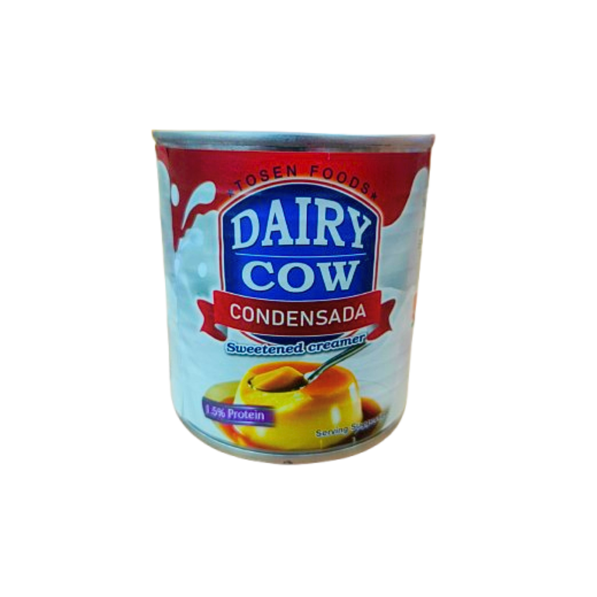 Dairycow Condensed Milk is a rich, creamy, and sweet milk product perfect for desserts, drinks, and baking. Made from high-quality milk and sugar, it adds smooth texture and delicious sweetness to recipes like leche flan, halo-halo, or coffee. A versatile pantry staple for home cooks and bakers.