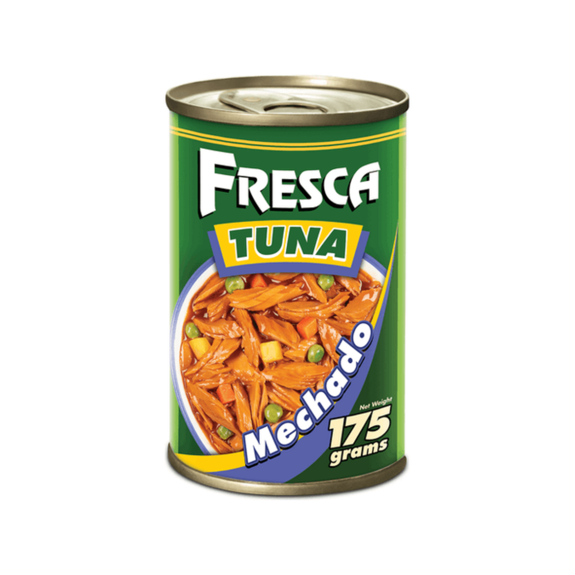 Fresca Tuna Mechado. This 175g can is filled with tender tuna chunks in a savory, tomato-based mechado sauce, seasoned with garlic, spices, and a hint of soy. It’s a satisfying, high-protein meal that’s perfect with rice and ready to eat anytime—no cooking required.