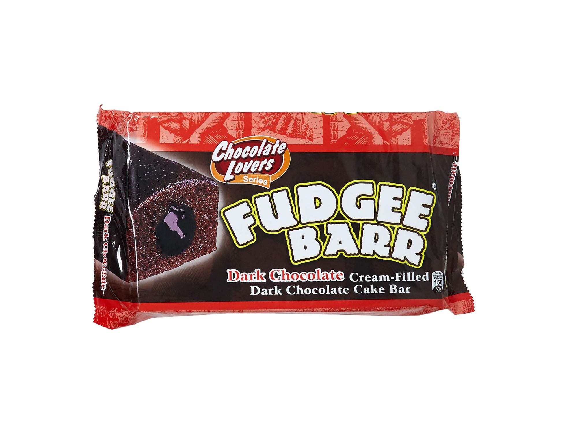 Fudgee Barr Dark Chocolate. This moist and rich cake bar is made with dark chocolate flavor and filled with a luscious dark chocolate cream center. Perfect for those who love bold cocoa flavor. Each bar is individually wrapped—great for baon, snack time, or dessert!