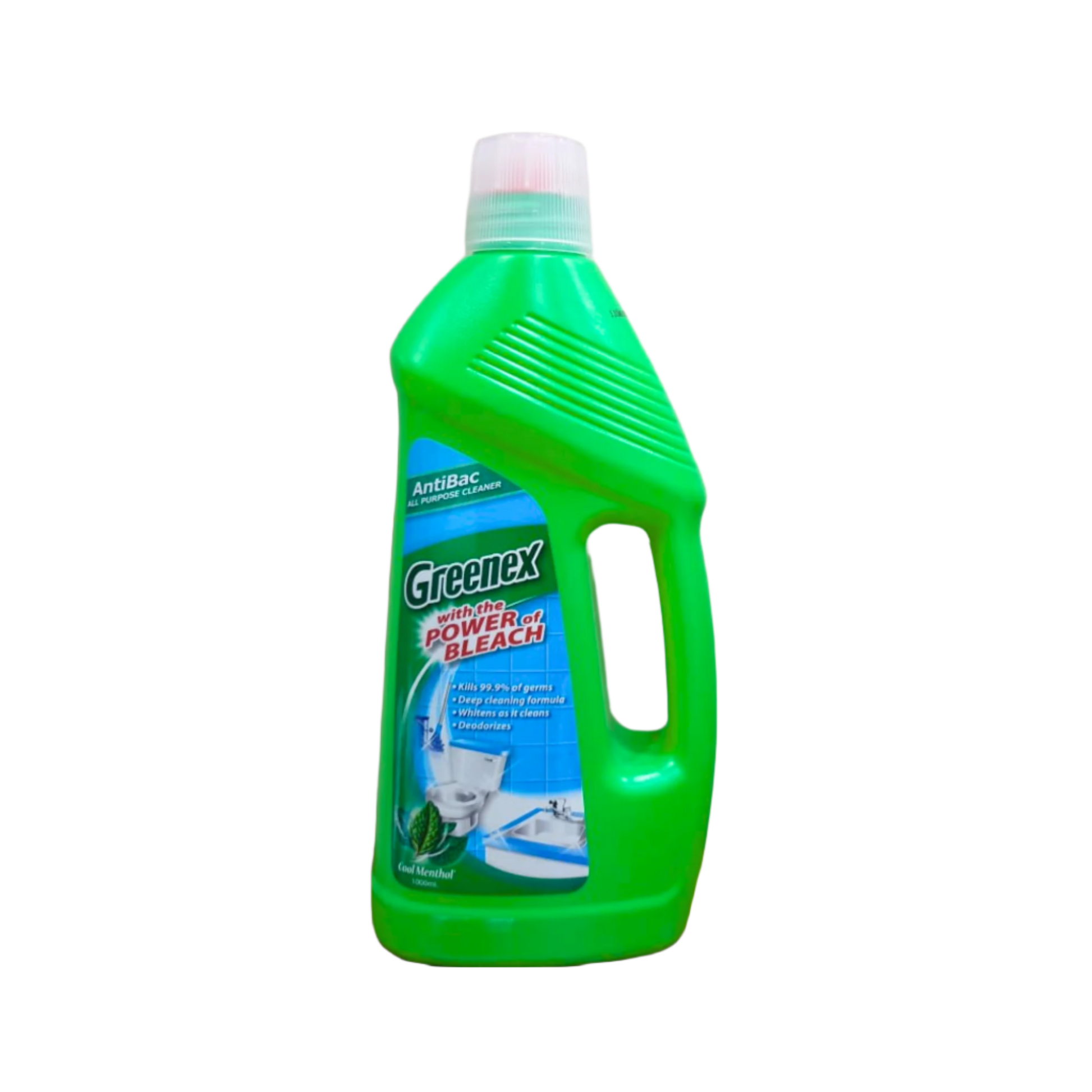 Greenex APC (All-Purpose Cleaner) Antibac Cool Menthol. This powerful antibacterial formula effectively removes dirt, grease, and 99.9% of germs from a wide range of surfaces. Infused with a refreshing cool menthol scent, it not only cleans but also leaves your home smelling crisp and invigorating. Perfect for use on floors, countertops, tiles, and other washable surfaces.