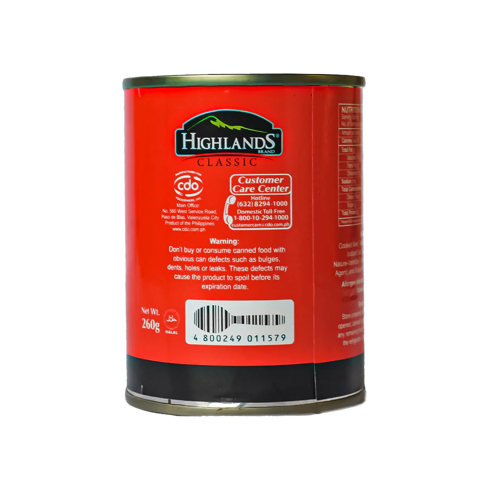 Highlands Corned Beef is made from premium-quality beef, offering a rich, meaty taste with long, juicy strands of beef. Expertly seasoned for a delicious and satisfying flavor, it is perfect for breakfast, sandwiches, or as an ingredient in your favorite recipes. Enjoy its tender texture and savory goodness in every bite.