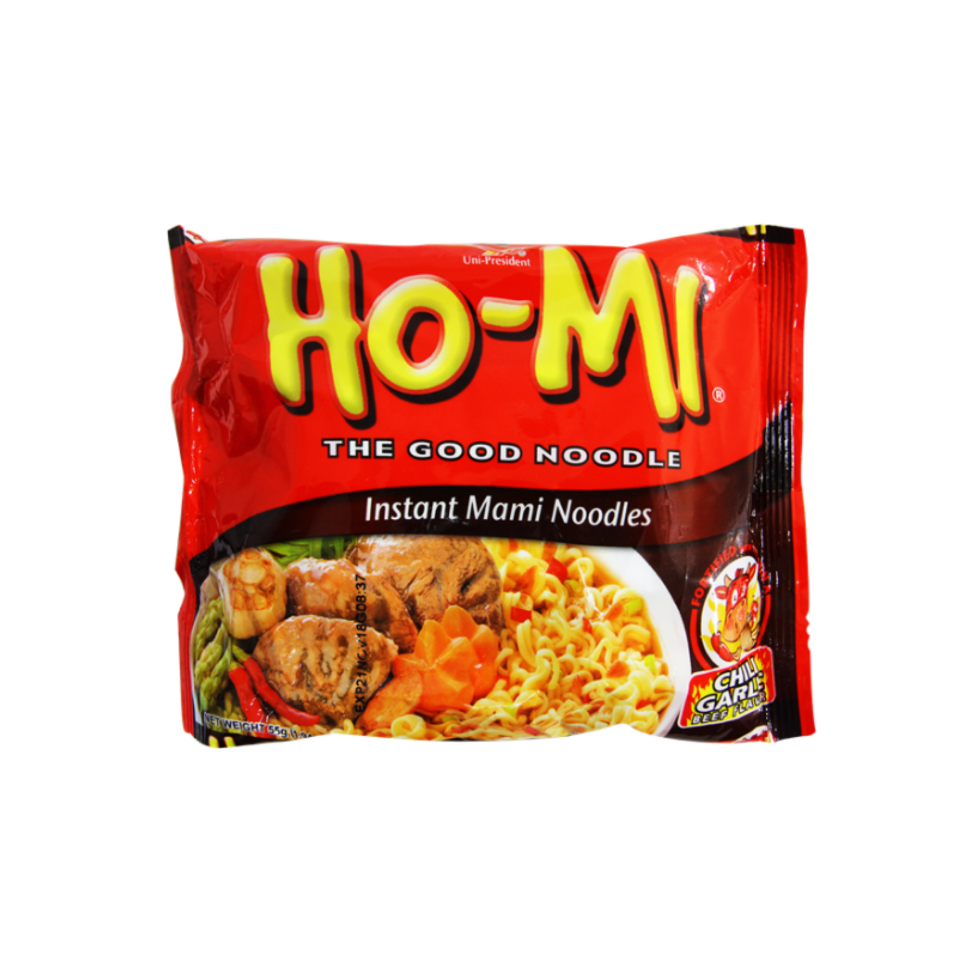 Homi Chili Garlic Beef Instant Mami Noodles. This instant noodle pack combines the rich, savory flavor of beef with the bold heat of chili and the aromatic kick of garlic. Ready in minutes, it’s the perfect quick meal for those who crave something spicy and satisfying.