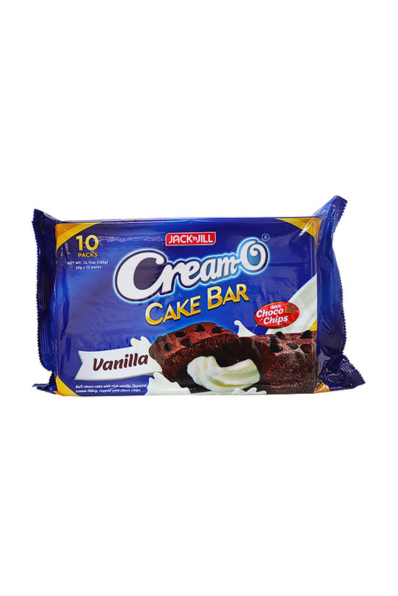 Jack 'n Jill Cream-O Cake Bar Vanilla. Each 40g bar features a soft, moist vanilla cake filled with a creamy vanilla center, offering a perfect balance of sweetness and texture. Conveniently packed in a set of 10 individually wrapped bars, it's an ideal snack for on-the-go moments, lunchboxes, or sharing with friends and family.