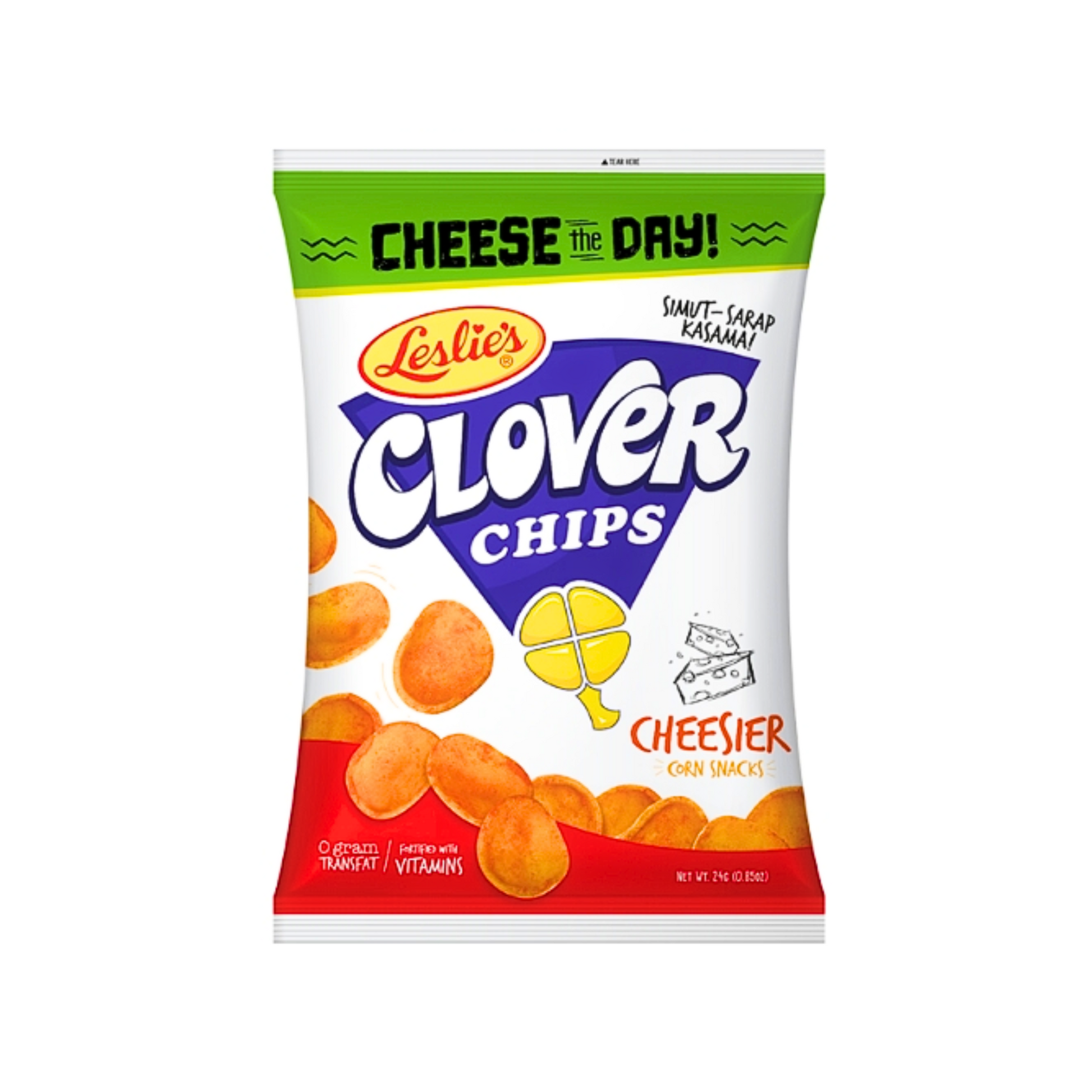 Leslie’s Clover Chips Cheese! These classic corn-based chips are packed with bold, cheesy flavor and a satisfyingly crisp texture. Perfect for snacking at home, at work, or on the go. Loved by kids and adults alike, this 24g snack-size pack is great for lunchboxes, travel, or a quick cheesy treat anytime.