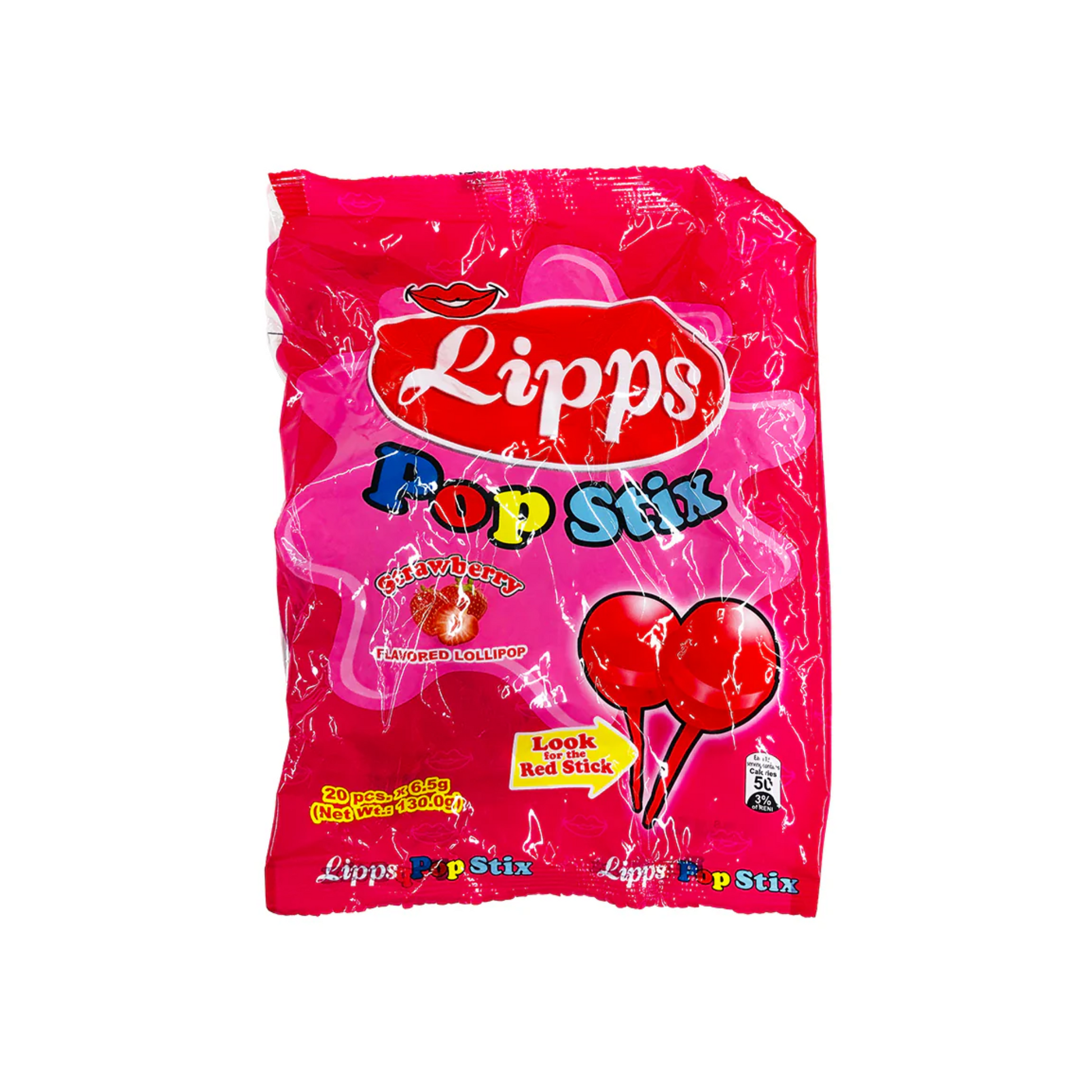 Lipps Pop Stix Strawberry Lollipops! Each pack contains 20 individually wrapped lollipops bursting with juicy strawberry flavor. Perfect for baon, giveaways, or satisfying your sweet tooth anytime. Great for kids and nostalgic adults alike!
