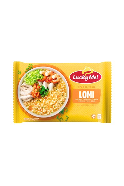 Lucky Me! Special Instant Lomi 65g brings the comforting taste of traditional Filipino lomi to your table in minutes. This egg noodle soup features thick, chewy noodles in a rich, savory broth infused with seafood and vegetable flavors.