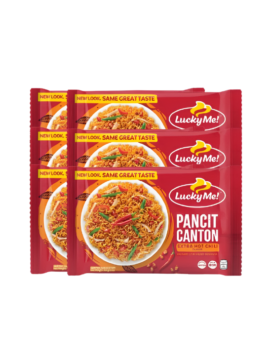Lucky Me! Pancit Canton Extra Hot Chili is a fiery and flavorful stir-fried noodle dish packed with an intense chili kick, perfect for spice lovers who crave bold and savory flavors.