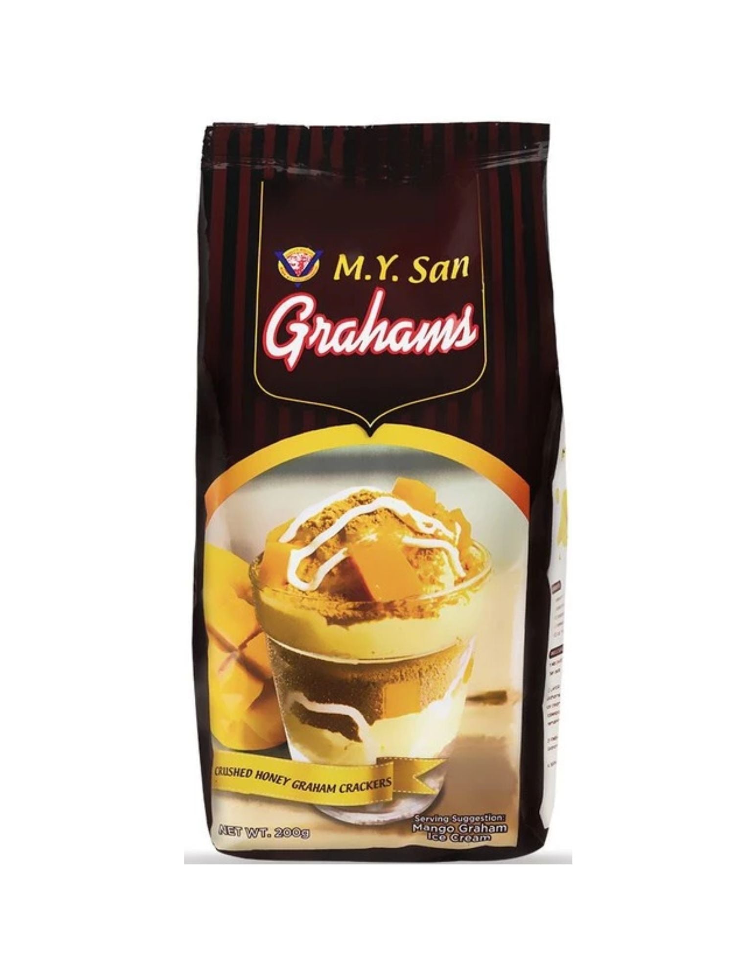 M.Y. San Graham Crushed Pouch. These finely crushed graham crackers are perfect for creating classic Filipino desserts like graham cakes, layered cheesecakes, or as a crunchy topping for ice cream and yogurt. Conveniently pre-crushed, they save you time in preparation while delivering the same quality and taste you expect from M.Y. San.
