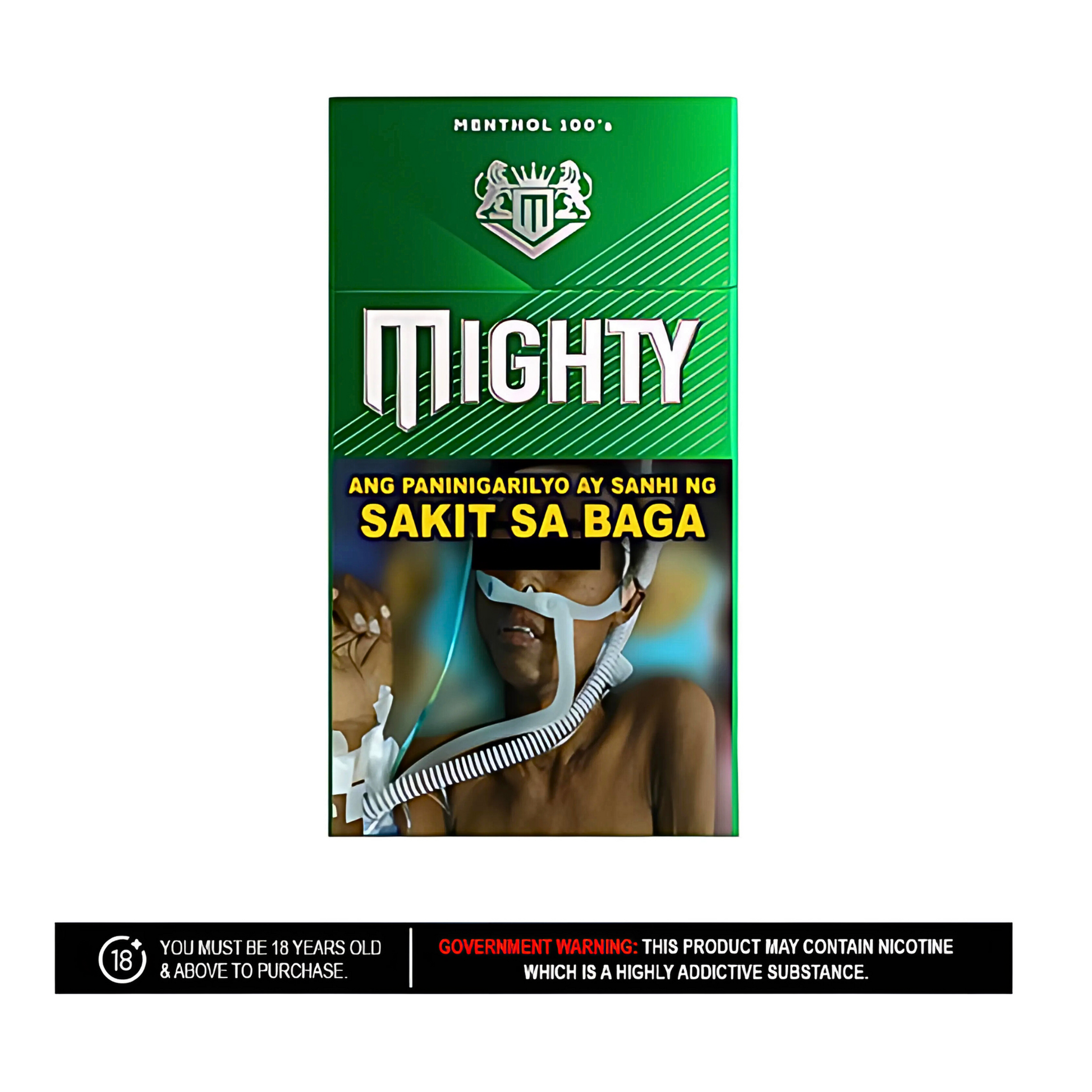 Mighty Cigarette Menthol Green. Packed in a convenient fliptop box, each stick delivers a smooth, crisp flavor with a satisfying finish. Ideal for menthol cigarette lovers who prefer a bold yet refreshing smoke.
