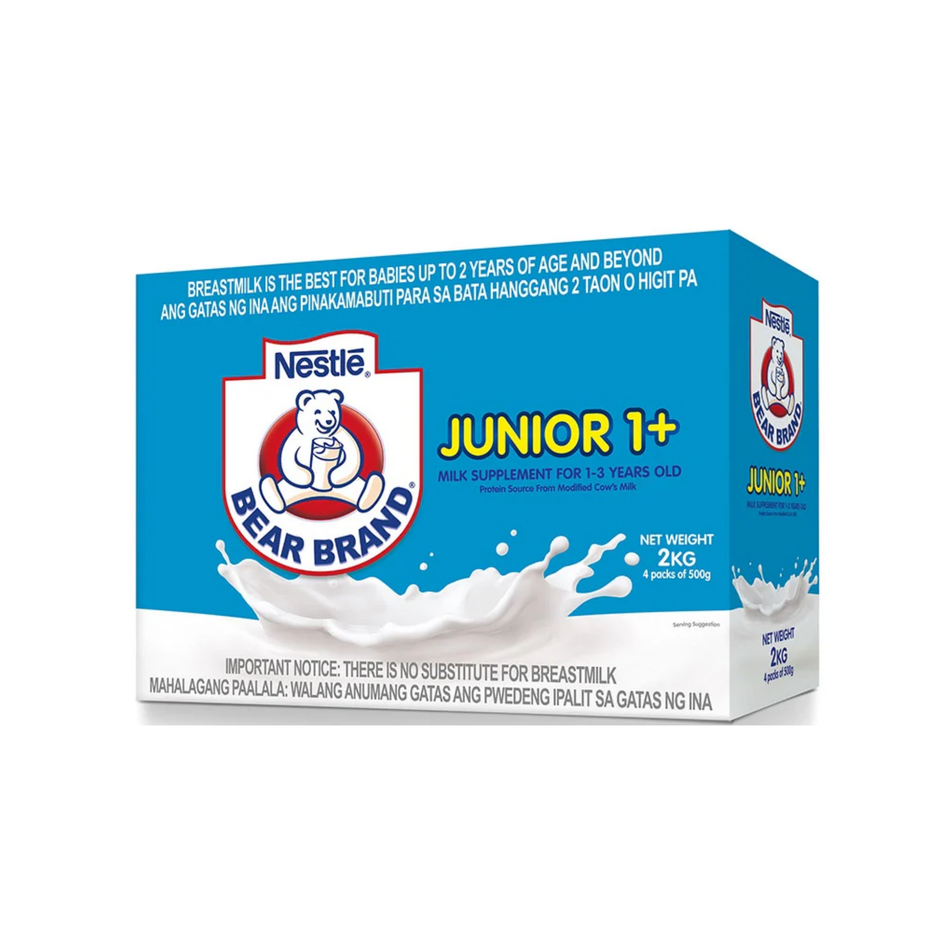 Nestlé Bear Brand Jr. This growing-up milk is specially made for children aged 1 to 3 years old, providing essential nutrients that support healthy brain development, immunity, and strong bones during this important growth stage.
