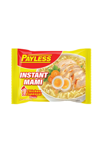 Payless Instant Mami Chicken. This 55g pouch delivers delicious, homey chicken flavor in just minutes perfect for merienda, rainy days, or anytime you need a quick and cozy meal.