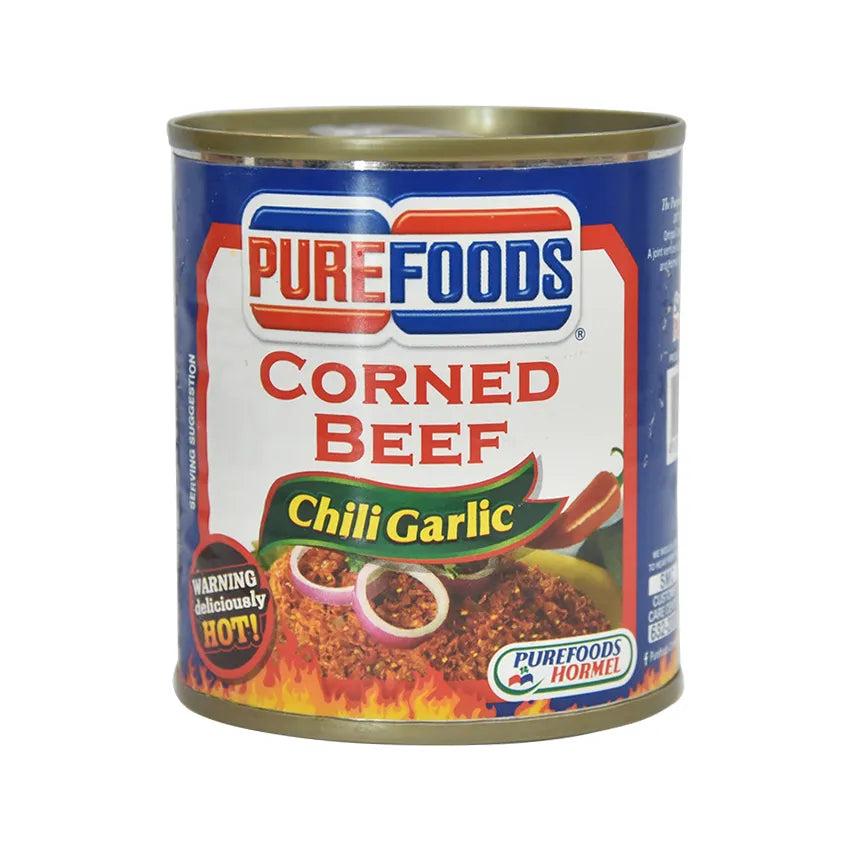 Purefoods Corned Beef Chili Garlic enjoy the tender, savory taste of classic corned beef, elevated with a spicy kick of chili garlic. Whether in sandwiches, rice meals, or as a zesty twist to your favorite dishes, this flavorful combo is sure to satisfy your cravings.