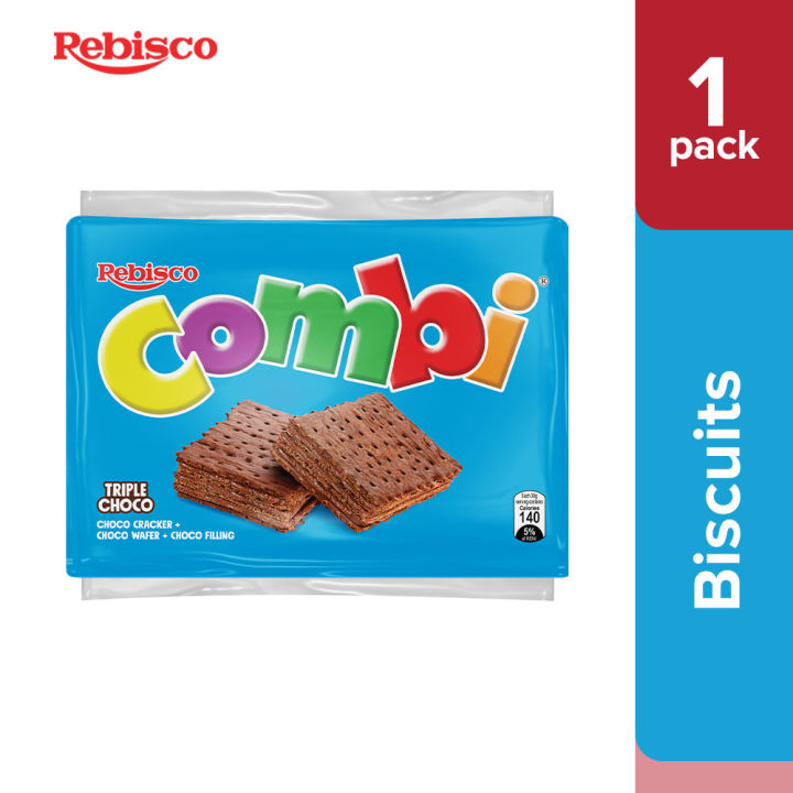 Rebisco Combi Triple Choco Sandwich a delightful fusion of crunchy choco crackers, creamy choco filling, and crispy choco wafer—an irresistible treat for any snack time! Each pack contains 10 delectable pieces.