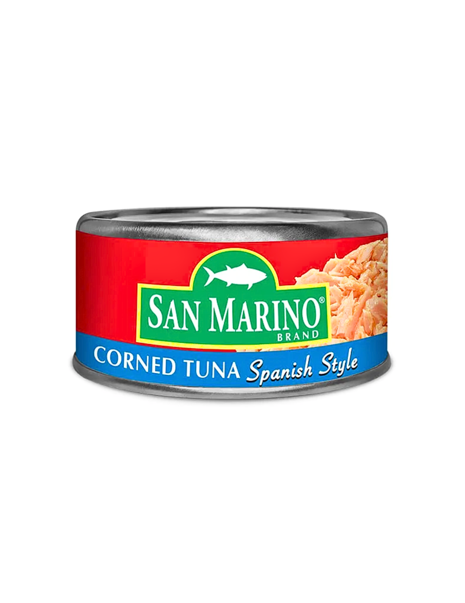 San Marino Corned Tuna Spanish Style 180g. This premium canned tuna combines the heart-healthy benefits of tuna with the bold flavors of Spanish-style seasoning. Seasoned with a delightful blend of spices, including pickle slices, carrot slices, bay leaves, and whole black peppers, it offers a unique and satisfying taste that elevates any meal.