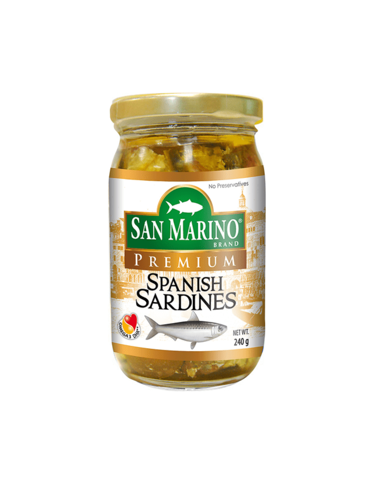 San Marino Premium Spanish Sardines, a gourmet delicacy crafted with high-quality sardines immersed in a special Spanish-style sauce. This ready-to-eat treat offers a harmonious blend of savory and mildly spicy notes, making it a versatile addition to your meals.