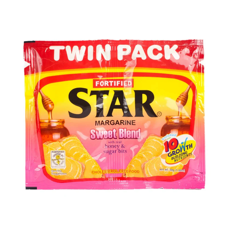 Star Margarine Sweet Blend is a flavorful and nutritious spread that blends the creamy richness of margarine with the natural sweetness of real honey and sugar bits. Enriched with 10 essential growth-promoting nutrients like Vitamins A, B, D, E, and iodine, it’s an ideal choice for boosting energy and supporting overall wellness. Its smooth, buttery taste with a hint of sweetness makes it perfect for spreading on bread, drizzling over pancakes, or enhancing your favorite dishes. Enjoy a tasty and nutritious twist with Star Margarine Sweet Blend!