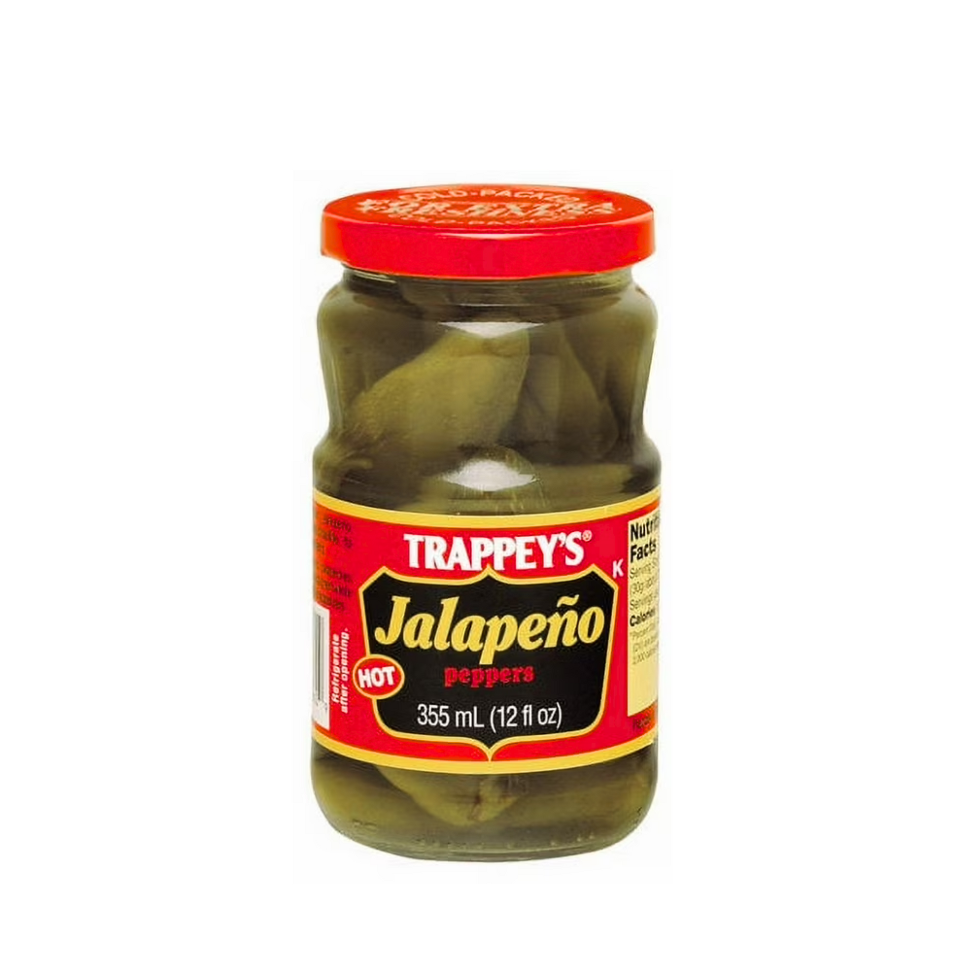 Trappey’s Sliced Jalapeño Peppers. Packed in vinegar and salt to preserve their crisp texture and vibrant flavor, these medium-heat peppers are perfect for nachos, tacos, burgers, sandwiches, and more.