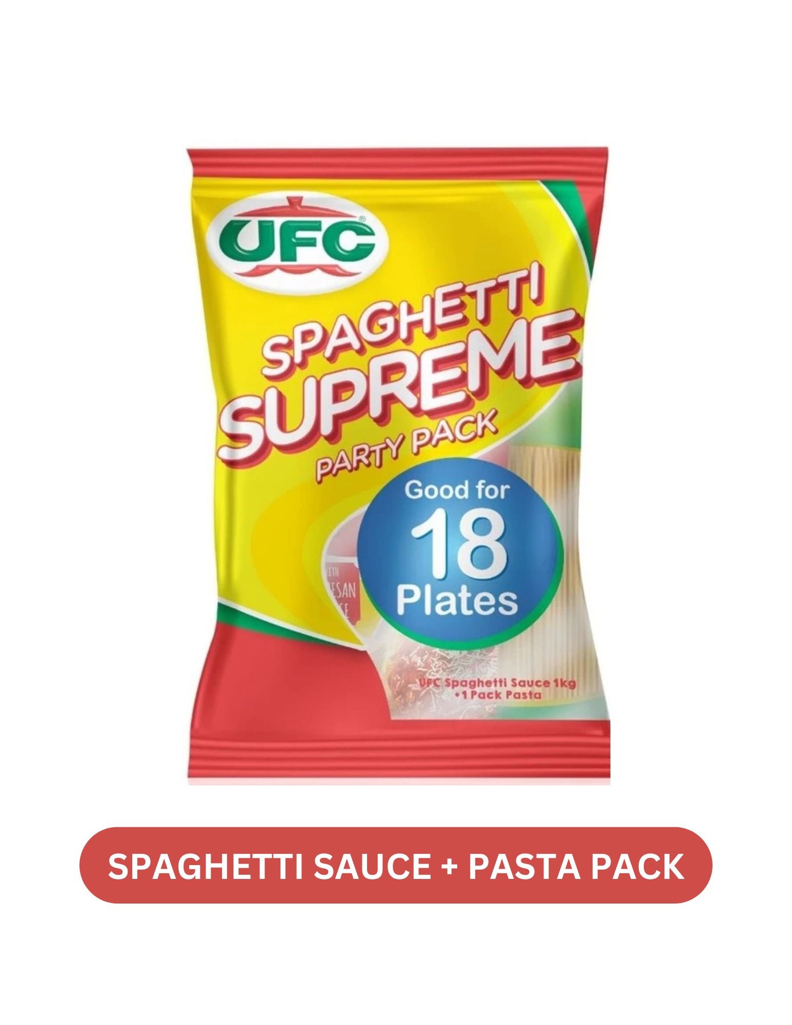 UFC Spaghetti Supreme Pack is a convenient bundle designed to simplify meal preparation while delivering authentic Filipino flavors. This pack typically includes a 1kg jar of UFC Spaghetti Sauce and 800g of spaghetti pasta, making it ideal for family gatherings, parties, or everyday meals.