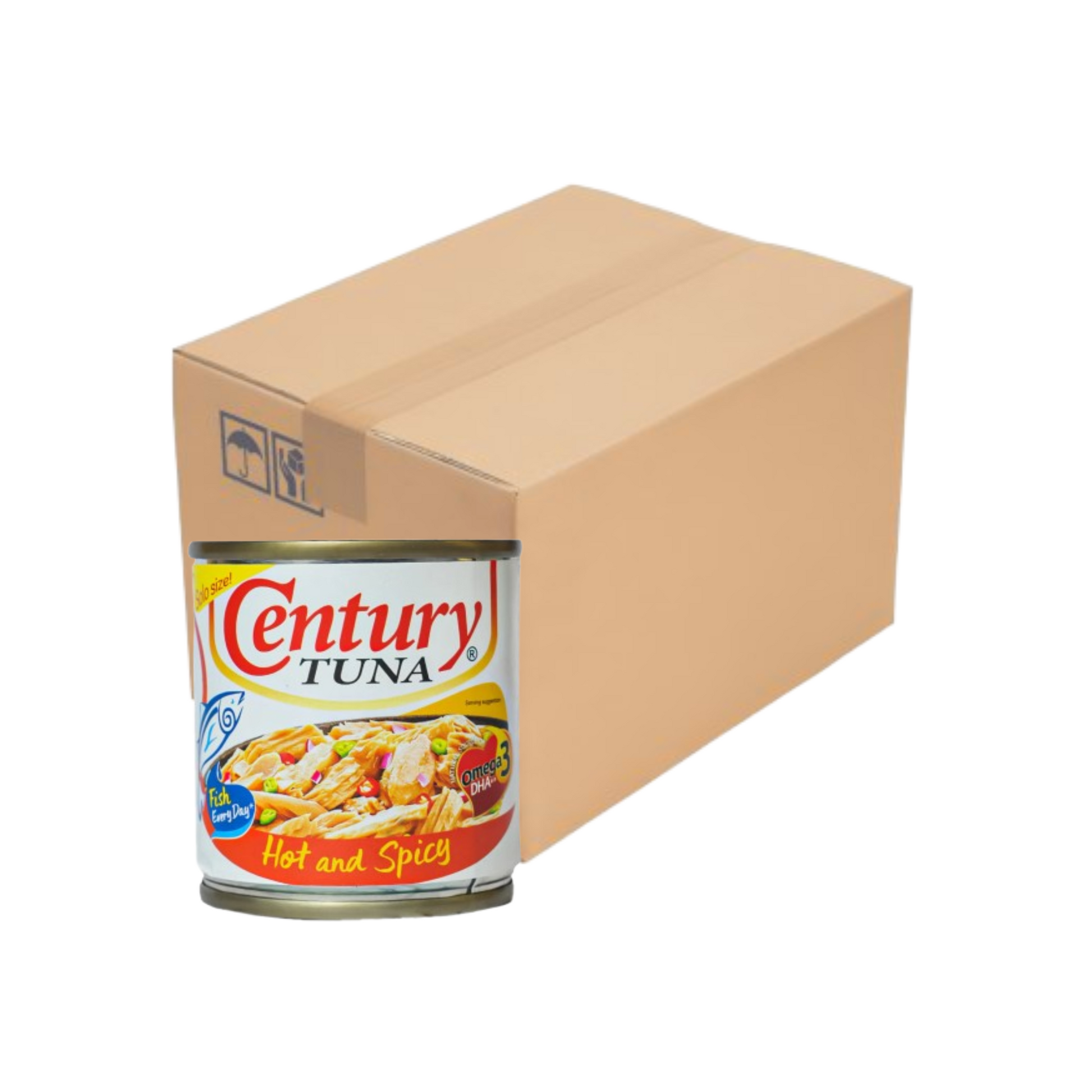 Century Tuna Flakes Hot & Spicy 95g, now in a 48-can bulk pack. Packed with high-quality tuna flakes in a flavorful chili-infused sauce, it’s perfect for rice meals, quick snacks, or healthy recipes with a kick. Convenient, protein-rich, and ready to eat—anytime, anywhere.