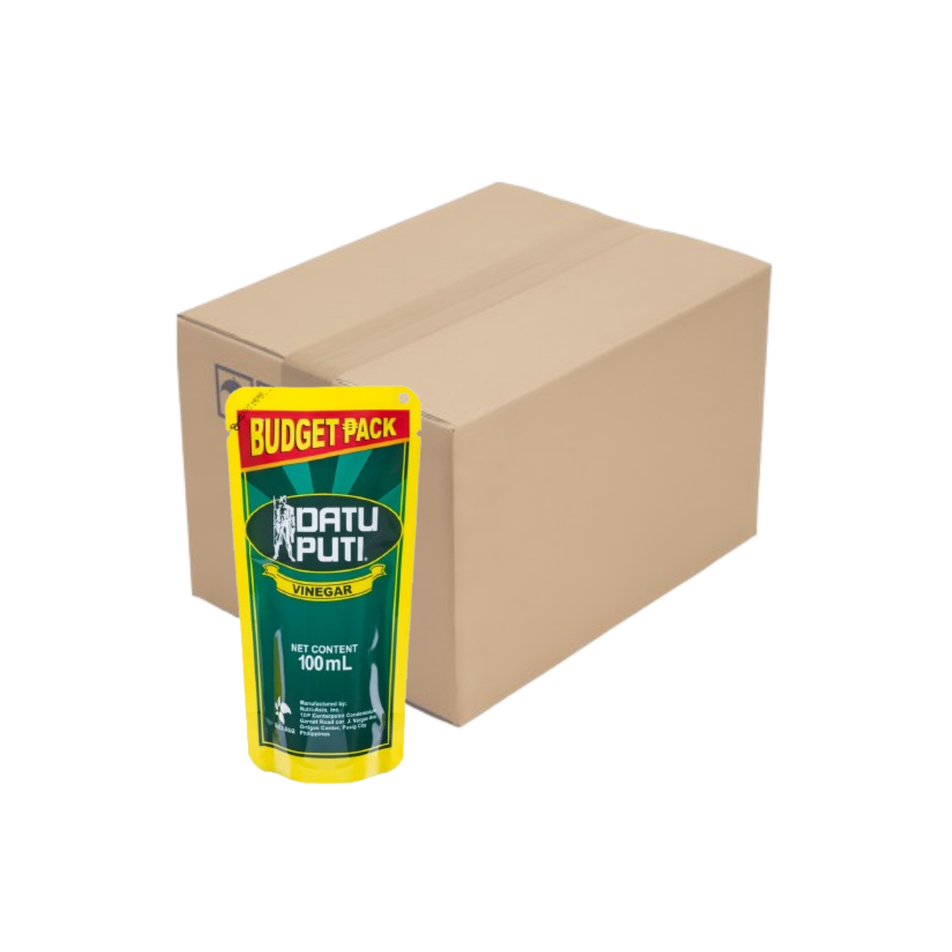 Datu Puti Cane Vinegar in a 100ml SUP (stand-up pouch) delivers the bold, tangy flavor loved in Filipino kitchens. This bulk pack includes 72 convenient pouches, making it perfect for restaurants, food stalls, catering, or everyday home use. Made from naturally fermented sugarcane, itβs ideal for cooking, marinating, and dipping.
