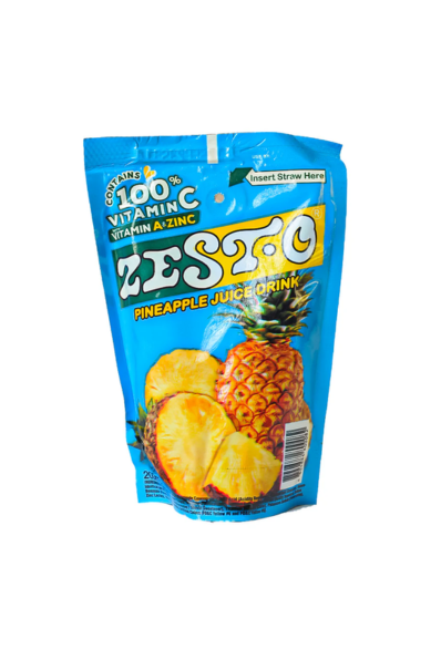 Zesto Juice Drink Pineapple Sup 200ml offers a refreshing tropical flavor in a convenient 200ml pouch. Made from 100% liquid fruit, this beverage provides the natural sweetness and tanginess of ripe pineapples, making it an ideal thirst-quencher for any time of the day.